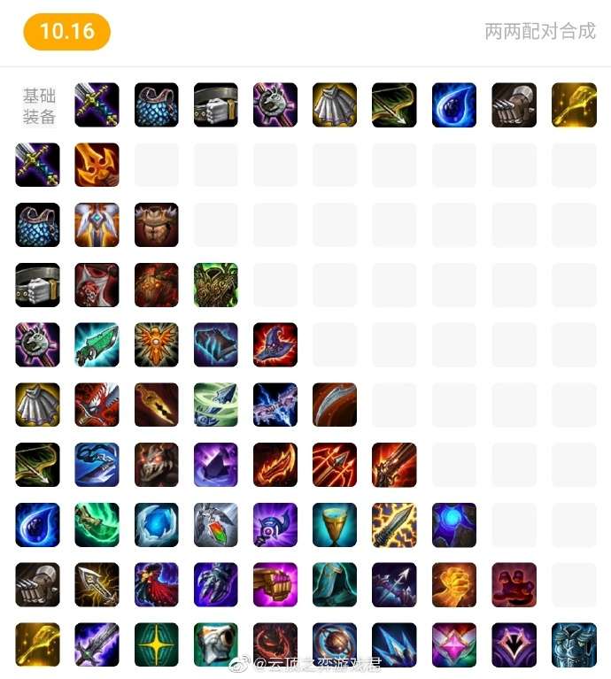 云顶之弈手游中很多小伙伴不知道最新高清装备合成图,也不清楚10.16装备怎么合成,今天小编就带着大家了解一下云顶之弈10.16装备合成图;