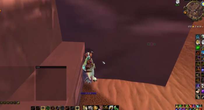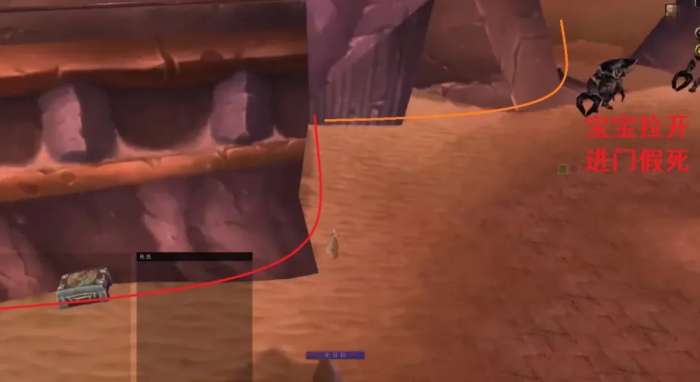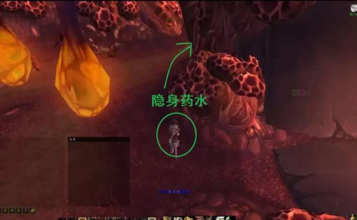 继续贴着左边墙骑马进门,不会触发战斗,一直到下图位置下马吃一瓶次级隐身药水(下图中玩家用的是工程学隐身饰品),贴墙拐到角落招出宝宝拉走2个小门神,快速进门到安全地方假死脱战。