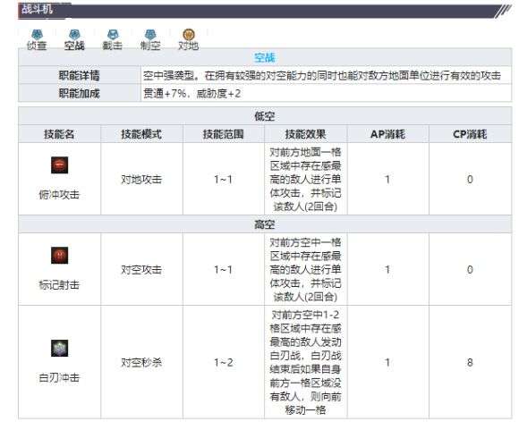 战斗机基本上是每局游戏必带的单位,我的建议是带2个战斗机单位,一个带侦察,一个带制空。侦察练度和稀有度都可以低一些,甚至一星战斗机过度也行,标记地面配合火炮清理地面单位。而带制空的则优先培养,可以以一敌多。