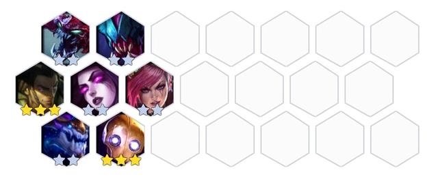 接着就是慢慢的加入斗士羁绊就OK了,7人口成型,在八人口时可以为阵容添加金克丝或者龙女,甚至潘森也能上,看场上阵容,你缺少什么就放什么就OK了!