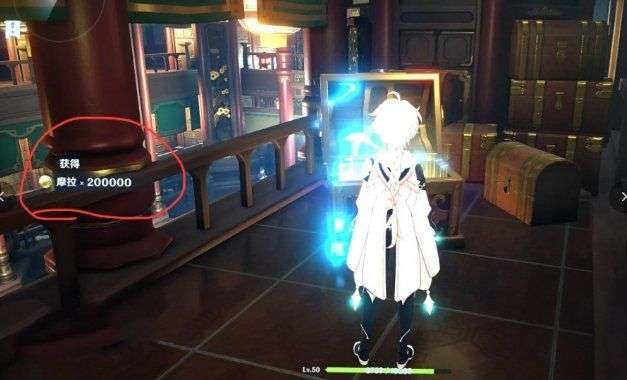 最后我们打开宝箱、白嫖20W摩拉。