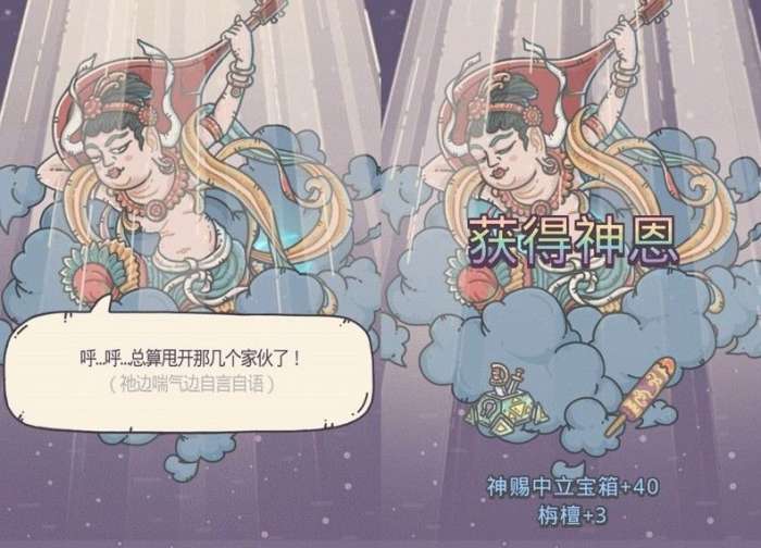 2、供奉后将触发飞天降神,解锁四大天王活动剧情。(供奉完后会获得3根香和神赐秩序宝箱*40)