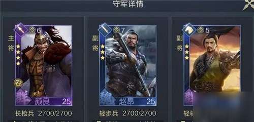 练度要求:技能等级5级左右,智力队有2个智力技能+1个功能技能,武力队伍有3个武力技能,综合队有1智+1武+1功能。五级地的守军品质,皆为【1紫2蓝】。