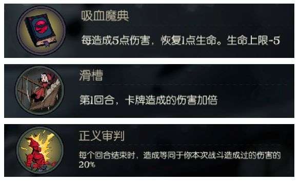 【吸血魔典】【滑槽】这种神一样的祝福,我基本上是必拿的。【正义审判】也很强力。不和流派核心祝福冲突可以拿。其它稳赚不赔的增益、减伤、狗命祝福都可以用,骑士不是很吃祝福,好的祝福也非常多,看哪个顺眼选哪个就行。