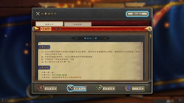 3、在指定比赛时段点击“赛事中心”-“进入比赛”;