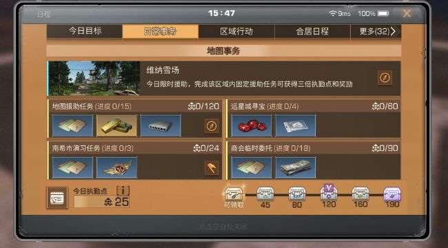 同时,完成两种援助任务均可获得执勤点,累积一定的执勤点可开启相应的执勤点宝箱,包含大量熟练度以及,金条、技能点、复合建材等自选奖励。