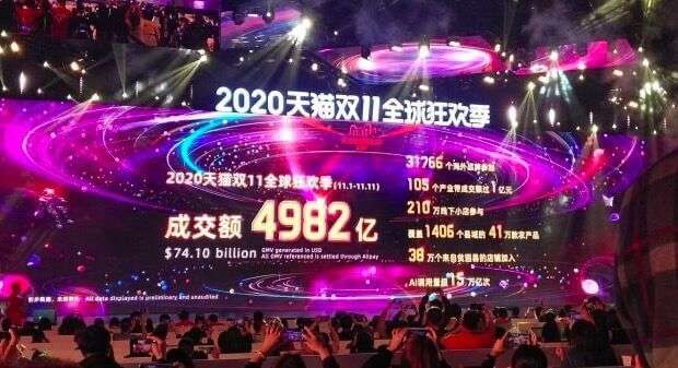 天猫双11成交额达4982亿元
