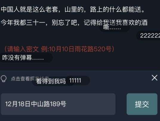 第一关答案:12月18日中山路189号