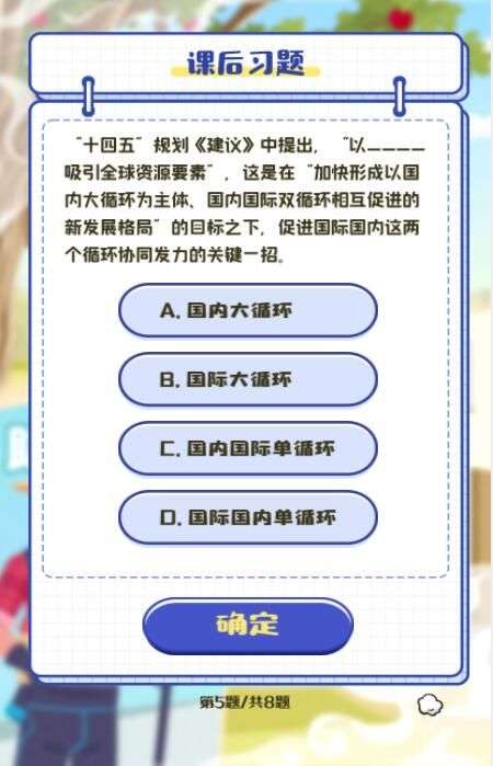 5、“十四五”规划《建议》中提出,以___吸引全球资源要素,这是在加快形成以国内大循环为主体,国内国际双循环相互促进的新发展格局的目标之下,促进国际国内这两个循环协同发力的关键一招。