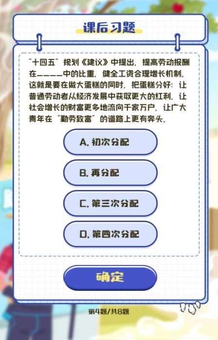 4、“十四五”规划《建议》中提出,提高劳动报酬在___中的比重,健全工资合理增长机制。这就是要在做大蛋糕的同时,把蛋糕分号;让普通劳动者从经济发展中获取更大的红利,让社会增长的财富更多地流向千家万户,让广大青年在“勤劳致富”的道路上更有奔头。