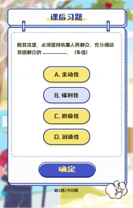1、脱贫攻坚,必须坚持依靠人民群众,充分调动贫困群众的___(多选)