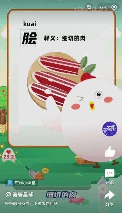 蚂蚁庄园中的脍炙人口什么意思,这个本来表示的是文学作品受到广泛的好评,在这个里面是什么意思呢,大家知道答案吗,下面就来介绍下脍炙人口的脍炙原意是啥。