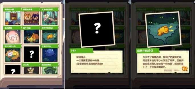举个栗子:要解锁事件“宁静的小镇”,只需要派遣呜呜和漆漆一次性探索初始村庄超过5分钟即可解锁。