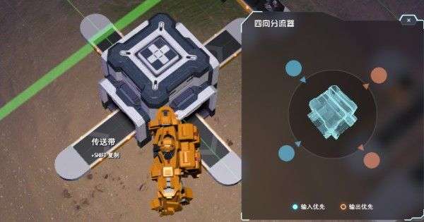 最后一个基础物流物品是四向分离器,输入输出取决于你传送带的链接方式。