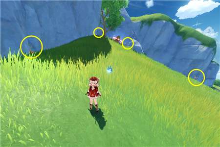 鹤翼的宝藏在归离原南边,需要点燃四个火炬开箱子,火炬位置如图(摄影模式真好用),第二个把宝箱后面的石头打碎就能看到