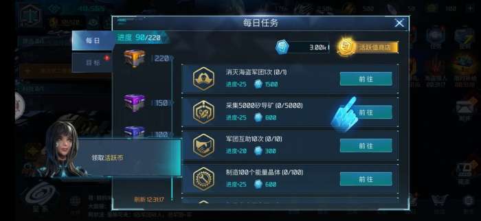 2、军团红包:可以在 探索点 点击“查看”按钮,即可领取信用点红包,并向军团成员(军团频道)发送红包。