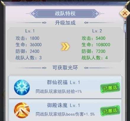 加入战队可享战队随机属性加成光环,该属性会在每日5点刷新,身为战队成员可使用宝或仙玉手动刷新。