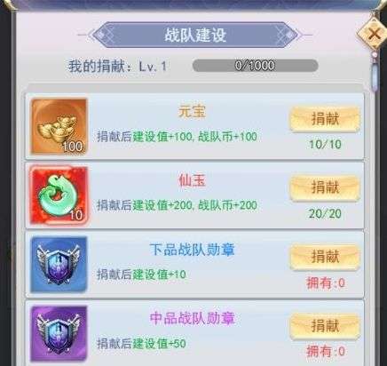 建设战队需要一笔不菲的资金,而如何筹措资金也将成为一项考核队长的硬核指标,建设值主要靠捐献。
