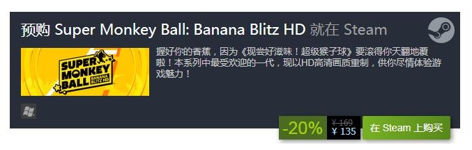 《现尝好滋味!超级猴子球》将于12月11日登陆Steam平台,国区预购游戏可享受优惠价,仅需135元,有需求的玩家可以前往购买。