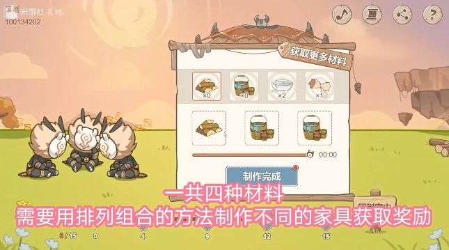 材料分为4种,需要不同的组合才能制造不同的家具,之前使用过的组合系统会提示“使用过的配方组合”。