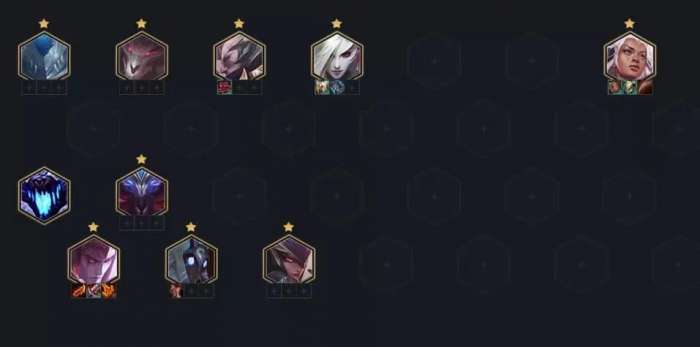 前期主C是维鲁斯,维鲁斯越早来2星那么阵容强度就越强。2星维鲁斯强势在3-2之前,后期想要一直连胜就需要更换寒冰,或者直接找到厄斐琉斯。