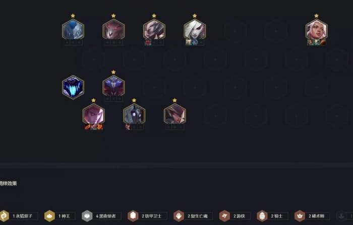 黑夜游侠是一套大成的九人口阵容,既然是一个9人口阵容那么阵容质量无疑是非常强的,主C厄斐琉斯装备上面也给大家介绍了,主要是搭配4黑暗2游侠羁绊效果,大家不要觉得厄斐琉斯就是一个刮痧的,只要触发黑暗羁绊,厄斐琉斯那才是真正的神。