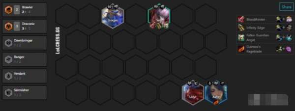 成型羁绊(双游侠线):4斗士3龙族2游侠2黎明2复生2复苏1驯龙1神王1双子