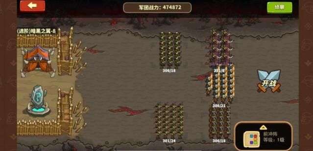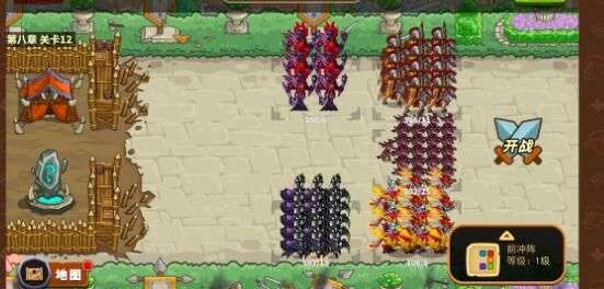 因为是限定种族的,所以我们选择不要炮兵的其他五个兵(或许有人要问为啥不用炮兵,炮兵人数少攻速慢,对面的前排是大剑魔,炮兵的输出受到极大限制,所以我们选择可以叠人数buff的其他兵团)