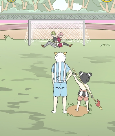 3.回到左边的界面,对着空地使用足球,对着足球使用剑,本关的任务就算完成了,恭喜少年顺利通关。