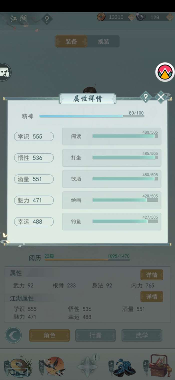 ⑵.确保自己等级下的剩余可增加属性足够多,下划线重点。如图505就是22级通过庭院行为所能达到的最大属性,如果接近这个值,就不合适使用专注丹,比如图中的学识,即阅读行为,只有20点余量。一般一个极专注丹属性能增加40左右的属性(待验证,肯定不止20点)。而作画行为就很合适,因为余量很多,吃一个极专注丹也不会溢出。
