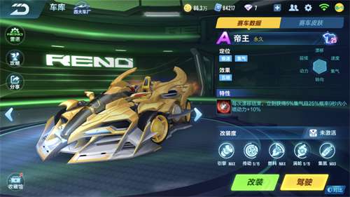 帝王:每次漂移结束,立刻获得5%集气且25%概率9秒内小喷动力+10%。