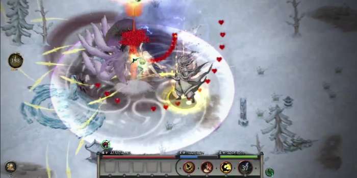 玩家在受到狐灵宝玉的任务后,根据箭头的指示,玩家在地图上会遇见涂山皓。涂山皓和九尾妖狐有着极为相似的技能特点。在外形由蓝色变为紫色。涂山皓的技能大部分和九尾妖狐类似。其中两个技能分别是释放远程的光球,涂山皓会根据玩家的走向释放光球。另一个技能是释放半圆形的迷惑技能,越靠近涂山皓,迷惑的间隙越小越容易命中玩家。命中的对象会造成3秒的眩晕效果。