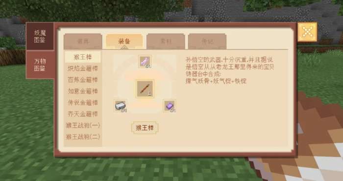3块【铁锭】+1块【妖气矿石】+3块【煤炭】进行合成