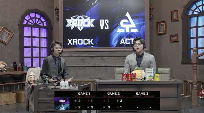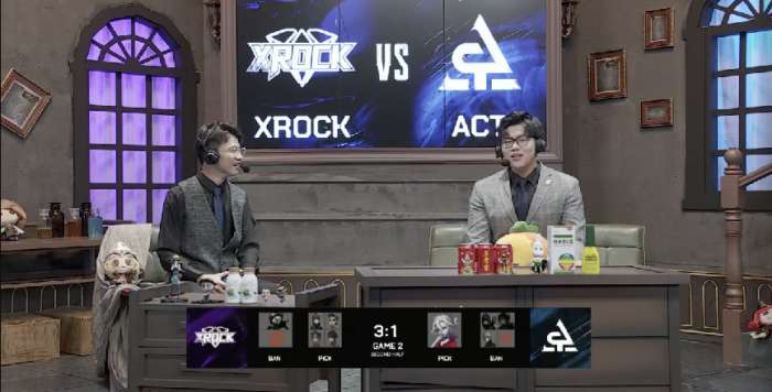 第二局双方以4:4的比分拿下胜利,现ACT战队以大比分1:0,小比分9:7领先XROCK。