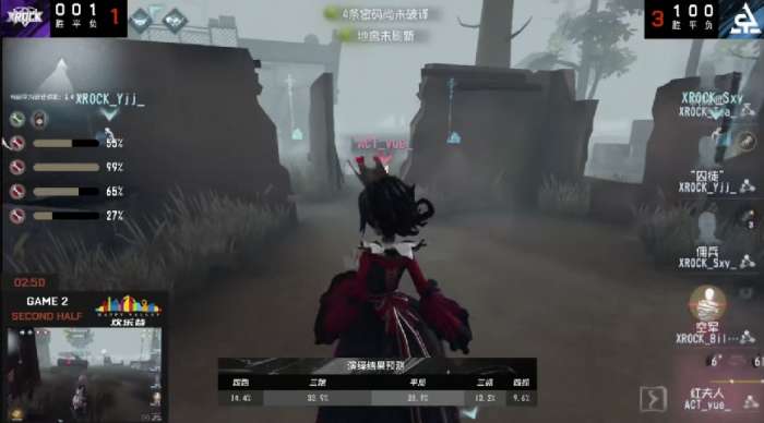 第五人格2021IVL夏季赛常规赛XROCKvsACT第二局双方求生者三出