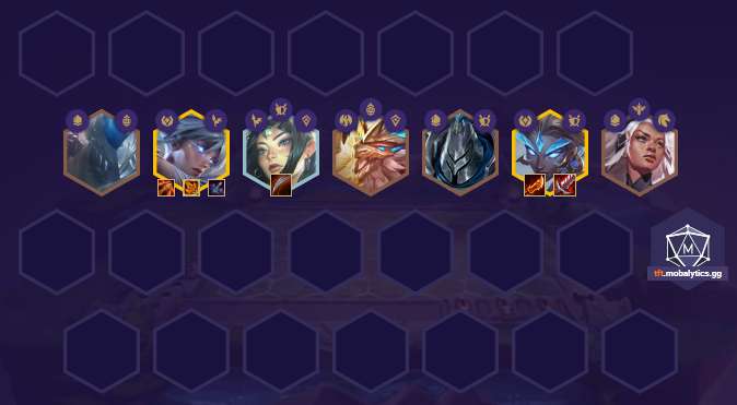 而当前版本却今非昔比,物理阵容越来越多,选择加入了铁甲体系的锐雯和豹女当双C,不仅阵容启动快还很肉,而且在前中期能持续连胜保血量,后期虽说不一定吃鸡,但这套阵容7人口成型非常适应版本节奏,吃吃分是没问题的!