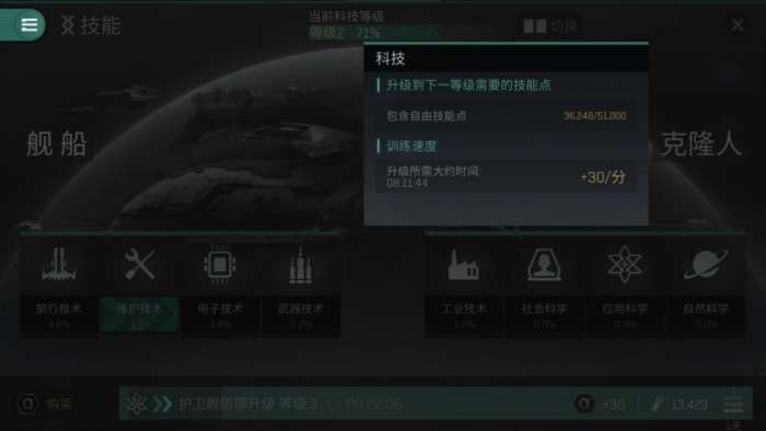 (从T2科技等级升到T3仅需51000,6000算是不小的技能点数了,T2的意思是2级科技等级,EVE使用科技等级对舰船进行了一个简单的强弱划分,在大多数情况下,科技等级越高的舰船性能就越强。要想驾驶科技等级较高的舰船有一个必要的条件,就是科技等级大于或等于该舰船)
