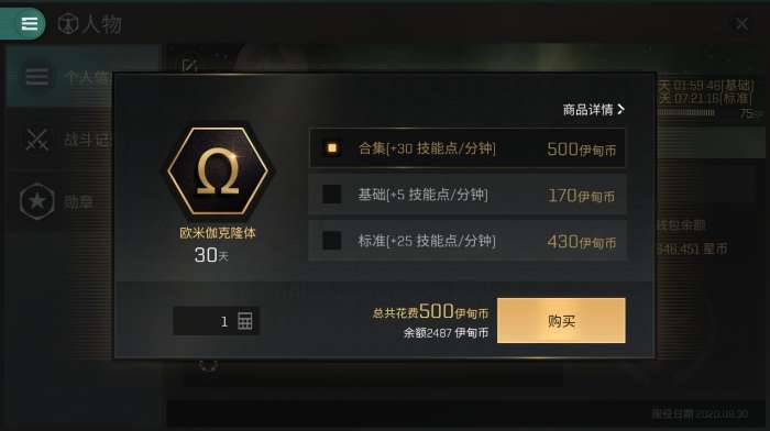 在不升级克隆的情况下,克隆飞行员的每分钟学习能力为30技能点,EVE官方还提供了3种级别的月卡:基础、标准、合集。基础月卡会额外提供克隆飞行员+5/分的学习能力,标准会提供+25/分的学习能力,合集则是同时享有基础和标准月卡,学习能力会额外+30/分。所以最高级的欧米伽克隆体会额外增加30/分的学习能力(直接购买合集的价格为500伊甸币,如果分开购买标准和基础会消耗600伊甸币,购买合集本质上相当于捆绑购买1个月的基础欧米伽和1个月的标准欧米伽,会让原本的欧米伽月卡时间叠加。)