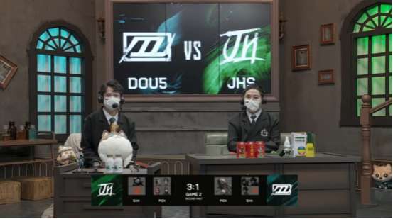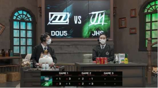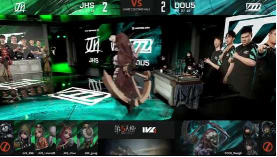 第二局JHS战队以5:3的比分拿下胜利。现JHS战队以大比分1:0,;小比分9:7领先DOU5战队。