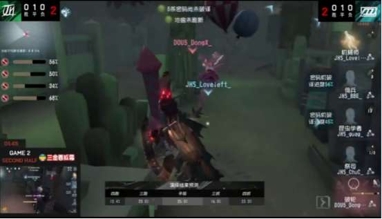 第五人格2021IVL夏季赛常规赛 DOU5 vs JHS 第二局 JHS昆虫学者两次干扰 三出东玄破轮