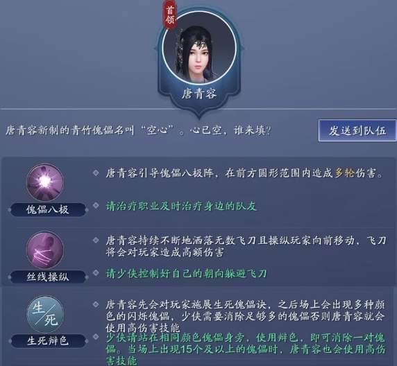 《天涯明月刀手游》心剑唐青容怎么打 心剑唐青容技能解析