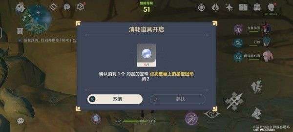 首先玩家完成雾海纪行任务流程,才能获得到如星的宝珠,到达上图位置后就需要消耗如星的宝珠来点亮壁画了。