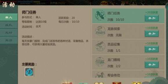 ①单人任务,活动内的单人任务,难度低,福利大,提升活跃度也很高,同时获取的活跃度奖励也是玩家在游戏内增加体验的一大玩法。
