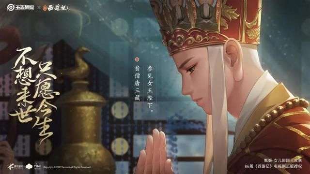 此款皮肤更是与剧中女儿国国王一样美丽,优雅,王者荣耀×86版《西游记》电视剧,剧中《趣经女儿国》一集,经典、意难平。王者荣耀还获得了86版《西游记》总作曲“央视西游记作曲许镜清老师”授权,改编了经典的《女儿情》,片中还有原剧唐僧配音演员张云明老师带来精彩演绎。