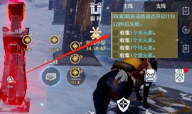 而当前地图的传送点开启,则触发当前地图的探索任务,蓝色圆形宝箱形则是黑方石试炼以及地图宝箱,开启可以获得基础材料跟少量经验。