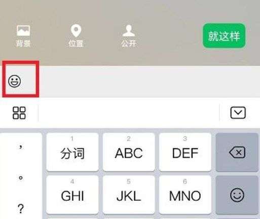 3、编辑内容时用户需要点击下方的一个圆脸表情图标,打开表情界面;