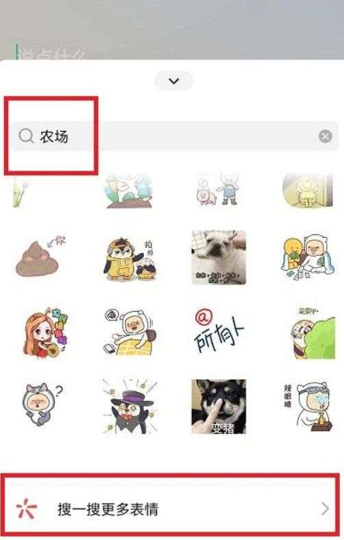 5、在搜索到农场之后,把所有的表情拉到最下方,就可以看到【搜一搜更多表情】进入其中;