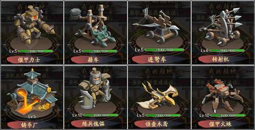 ②机关升级:每次升级消耗铸币,升级特殊等级需要额外消耗零件。
