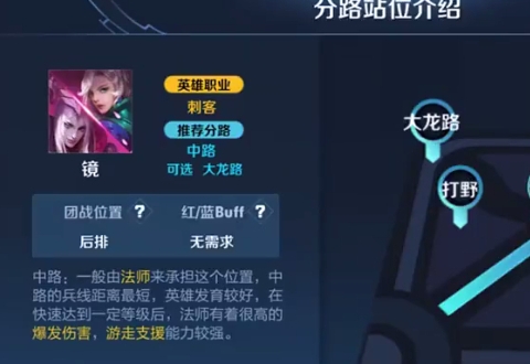 这里我们可以看到,镜这个英雄应该是拥有两种形态的英雄,并且在团队中担任刺客一职。对于红蓝buff没有需求,但是这的确是一个有蓝条的英雄。