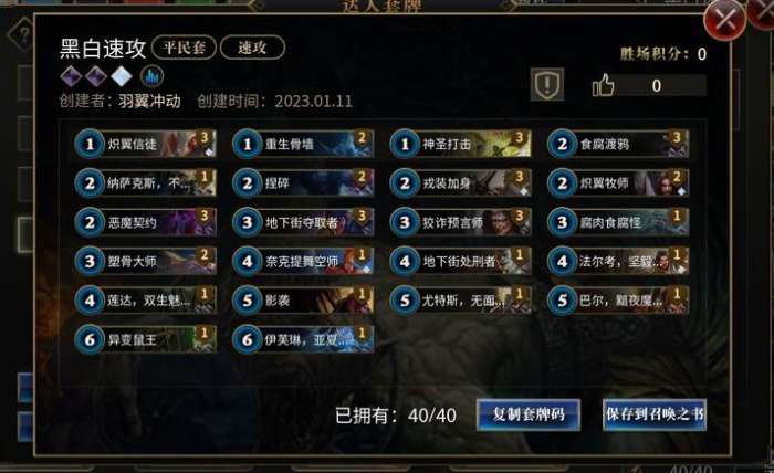 如果要使用这副套牌,请先将套牌码复制到剪贴板,然后在“达人套牌”里点击“使用套牌码”进行粘贴。